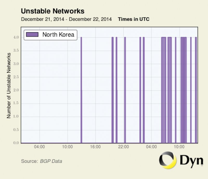 This chart from Dyn Research shows that North Korean websites have been going through regular outages:
